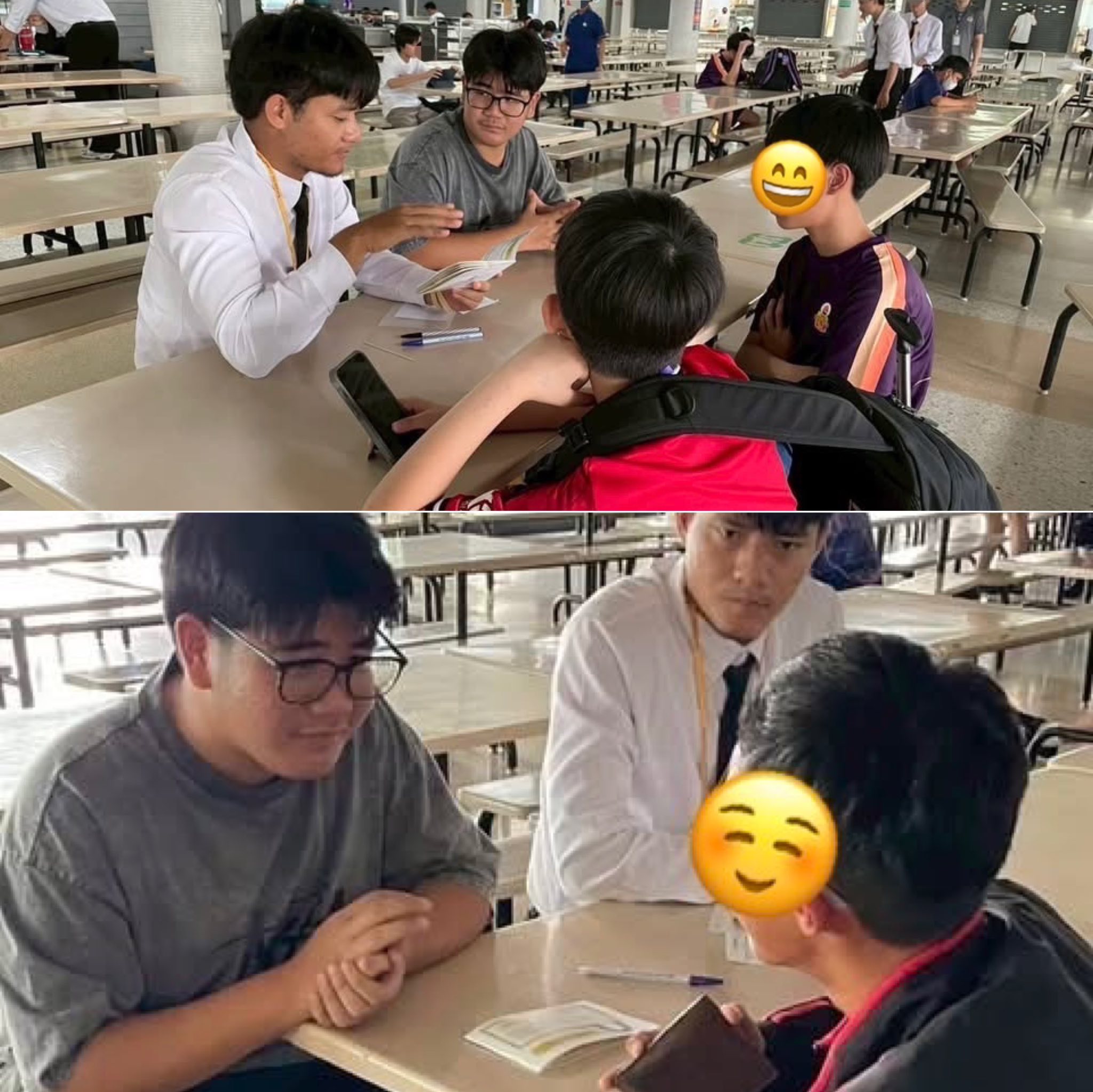 มีนักศึกษาจากชั้นเรียน การประกาศและสร้างสาวก พระคริสตธรรมกรุงเทพฯ ปี 1 มาร่วมออกประกาศที่โรงเรียนด้วยกัน